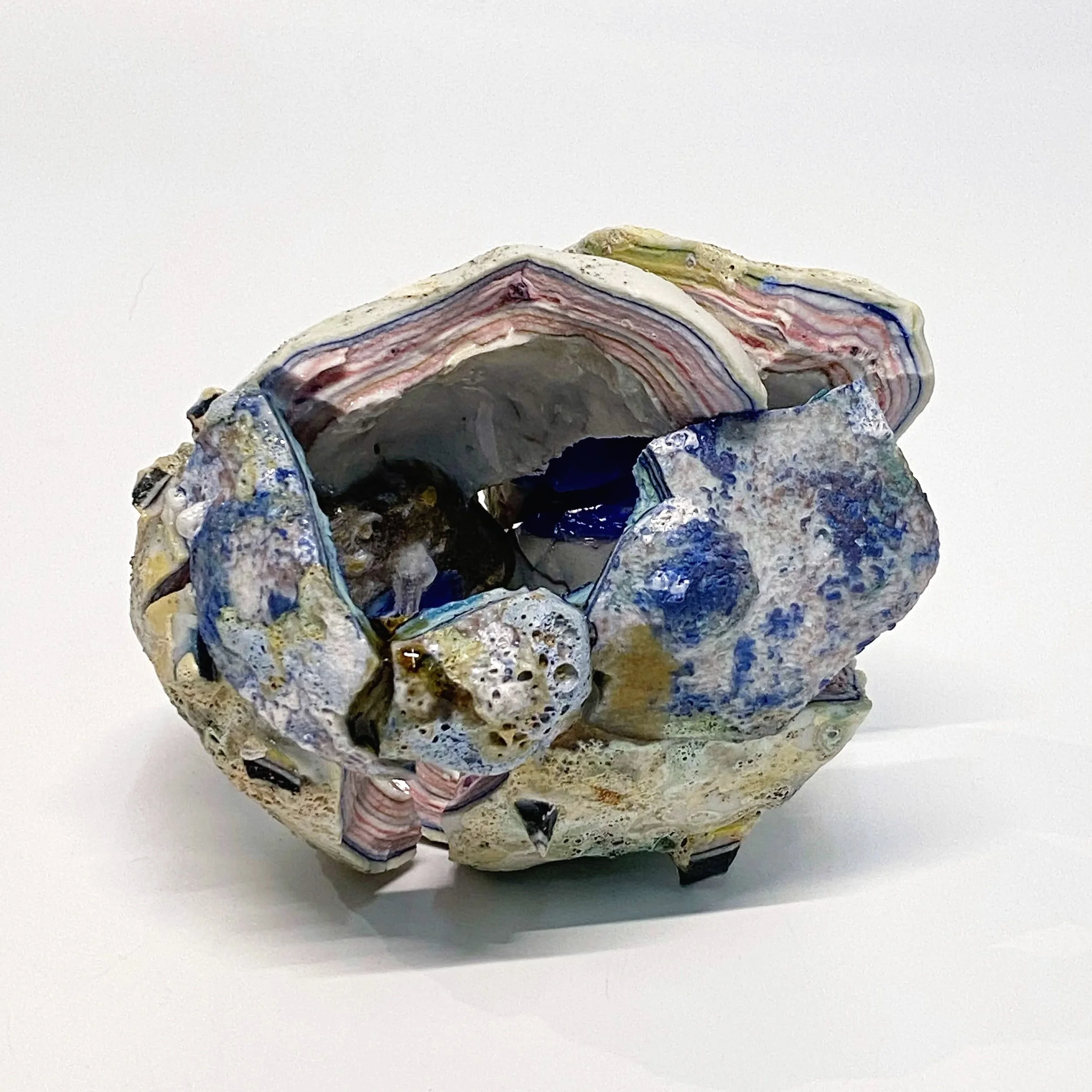 This series is an extension of the ongoing project under the overarching concept of Memory Containers, positioning stones from specific locations as symbols of the place of memory and witnesses to recollection, while layers of ceramic material surrounding them visualize the narrative. It attempts to express memory as a process that continues to change and grow more fluid. Starting from an imperfect yet complete memory, it explores how different stories interact within a single narrative to form new tales, and even the divergence between the memory of a place and its story.